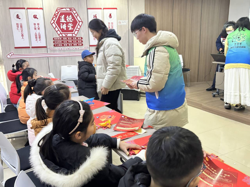 为深入传承红色基因,厚植青少年家国情怀,推动红色精神融入基层社区教育,2026年2月10日,南通大学杏林学院青核先锋宣讲队携手南通市朝晖社区志愿者团队,走进崇川区新城桥街道朝晖社区,开展“薪火传精神,砺志铸国魂”主题公益活动,以沉浸式红色宣讲与互动体验,为社区少年儿童带来一场兼具精神滋养与教育意义的假期盛宴。