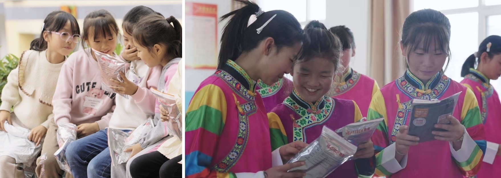 2025年的10万件捐赠行动,从重庆彭水苗族土家族自治县鞍子镇启程后,来到青海,为当地的儿童、妇女、一线环卫工人及老人等群体送去15000件HEATTECH保暖内衣,在气温骤降之际提供及时的保暖支持。
